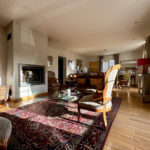 Sur le premier niveau, vous retrouverez une jolie cuisine séparée et équipée, un grand séjour lumineux avec cheminée, une chambre, une salle d’eau et un wc