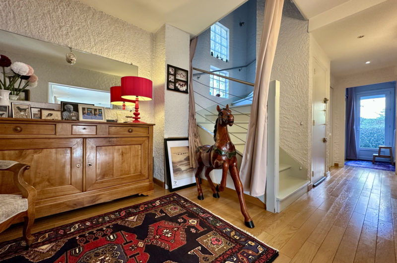 A l’étage, la maison dispose de trois chambres, un bureau, un dressing, une salle de bains et wc.