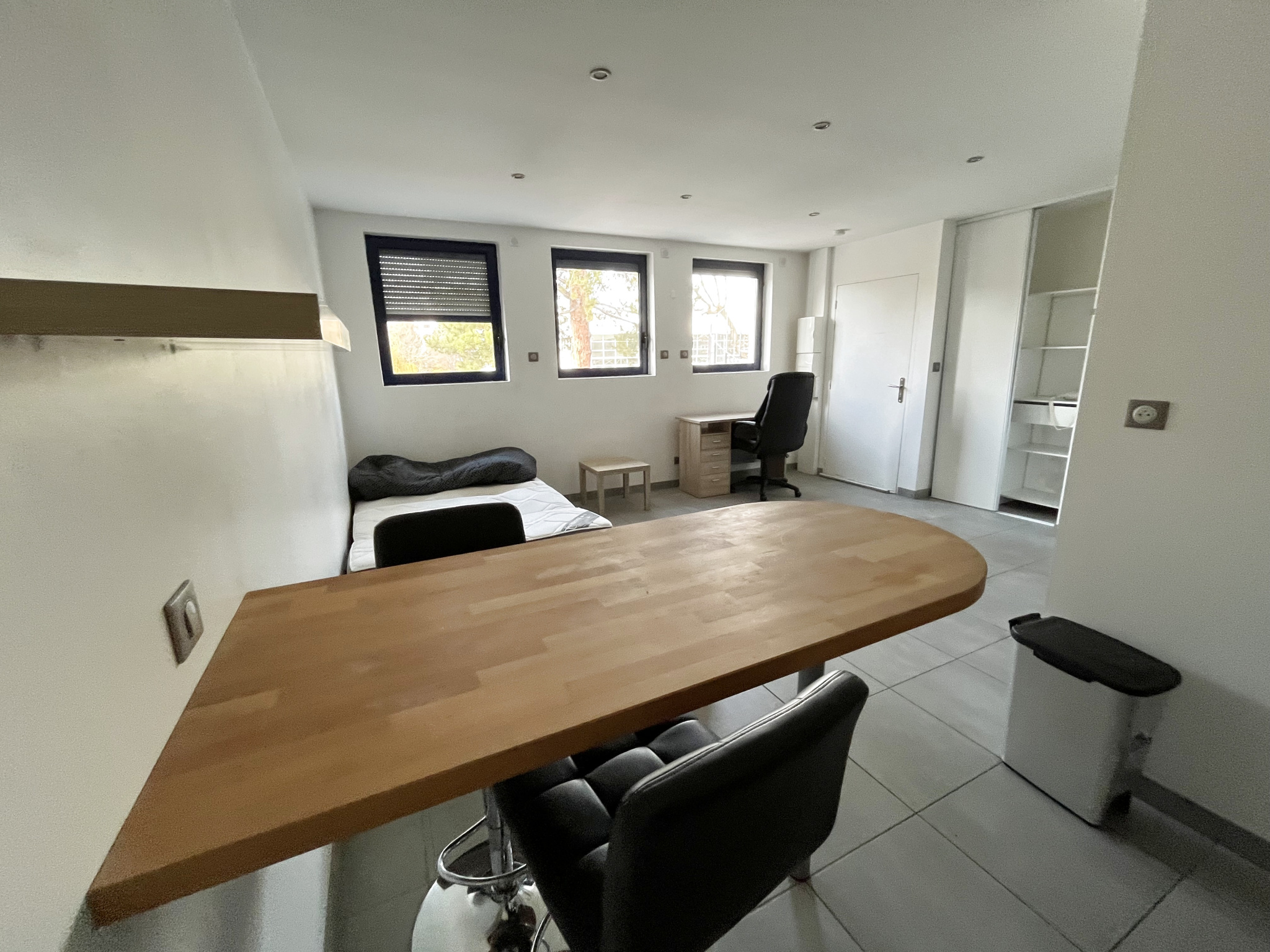 Le Cabinet Clermont Province vous propose ce studio meublé situé dans le secteur Coubertin / Rabanesse/ Lecoq. A deux pas de la ligne de Tram, cet appartement calme, avec vue dégagée sur le puy de Dôme et le parc de la piscine Coubertin, dispose d’une belle pièce principale, d’une cuisine meublée et équipée et d’une salle d’eau avec grande douche. Un grand placard de rangement vient compléter les équipements. Chauffage électrique.
