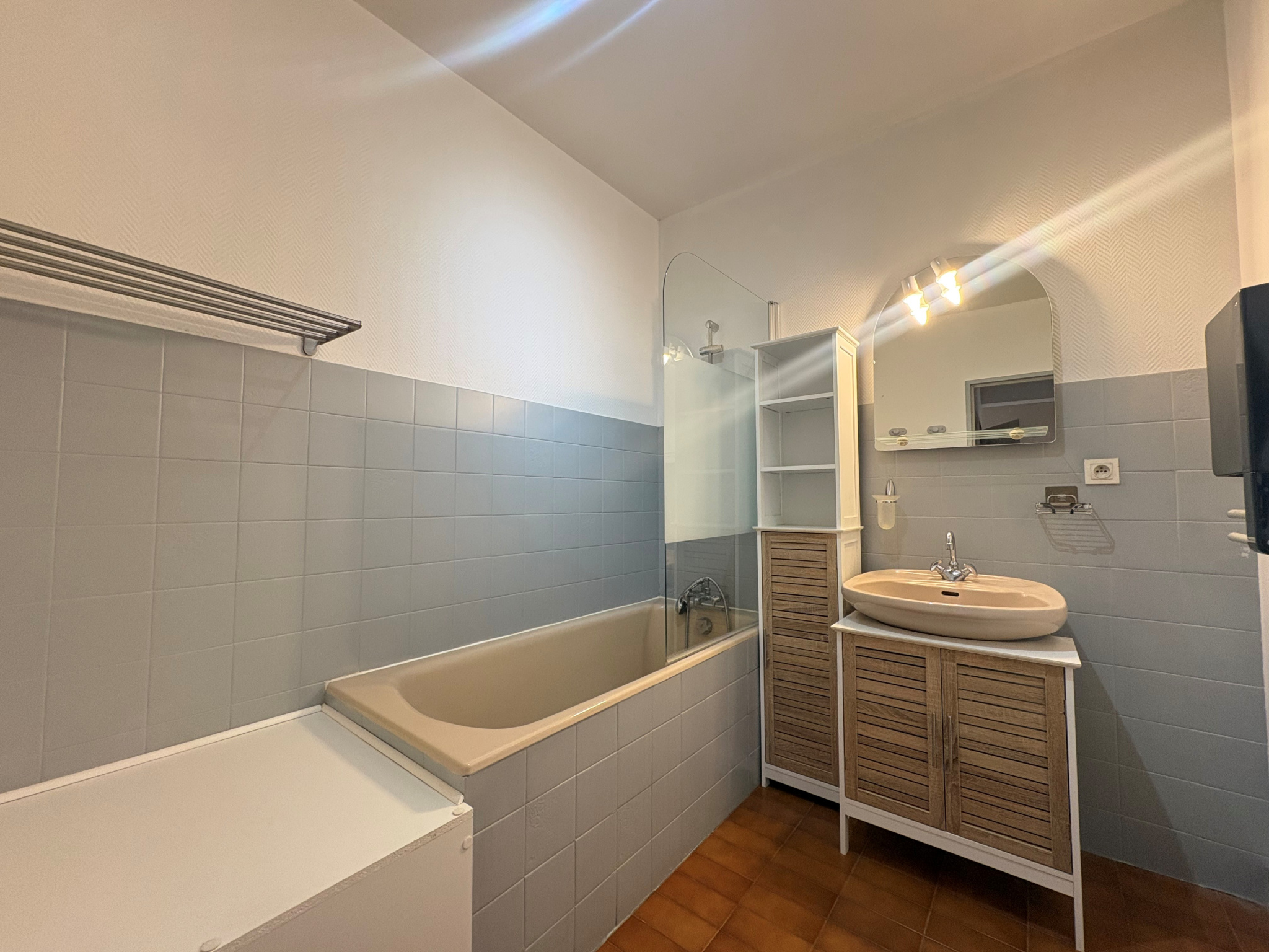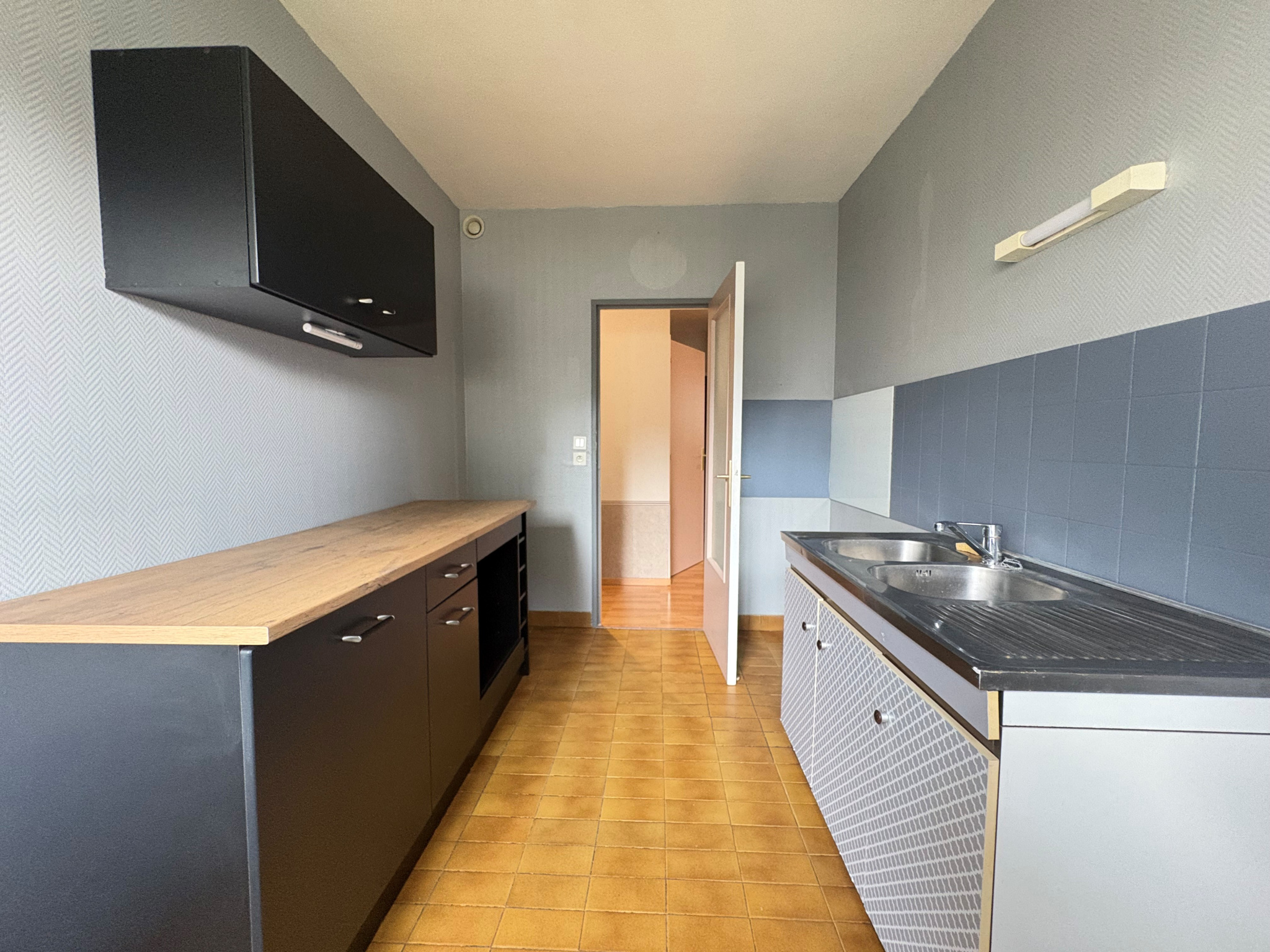 Cet appartement se compose de deux grandes chambres, d’un séjour avec balon, d’une cuisine séparée et salle de bain.